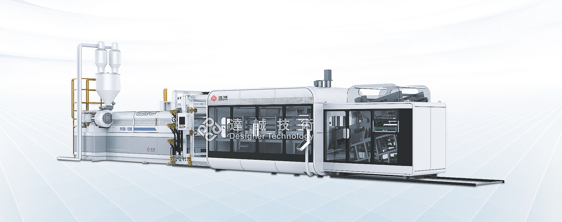 该机组集自动计量上料,片材挤出,塑化成型、自动堆叠和计数、废边及边料在线破碎回收为一体的全自动速墙生产线。 具有高效节能,节约人力资源,塑杯生产卫生可靠等优点。 挤出,成型同步化控制,实现片材线速度自动跟随。